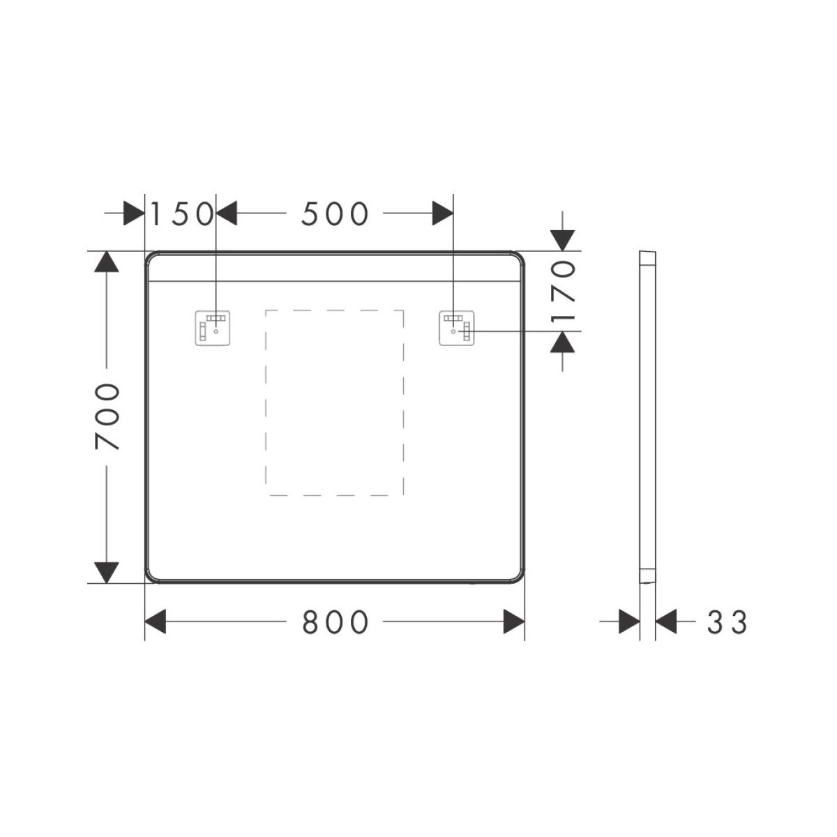 Hansgrohe Xarita Lite Q zrcadlo 80x70 cm obdélníkový s osvětlením s vyhřívací podložkou černá 54971670