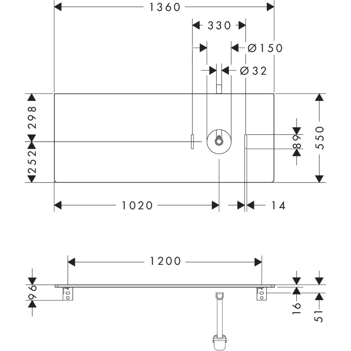 Hansgrohe Xelu Q deska na skříňku 136x55 cm dub 54117230