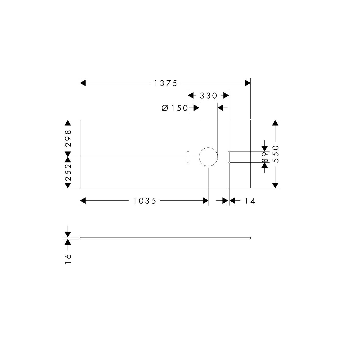 - výřez pro umyvadlo: umístěný uprostřed