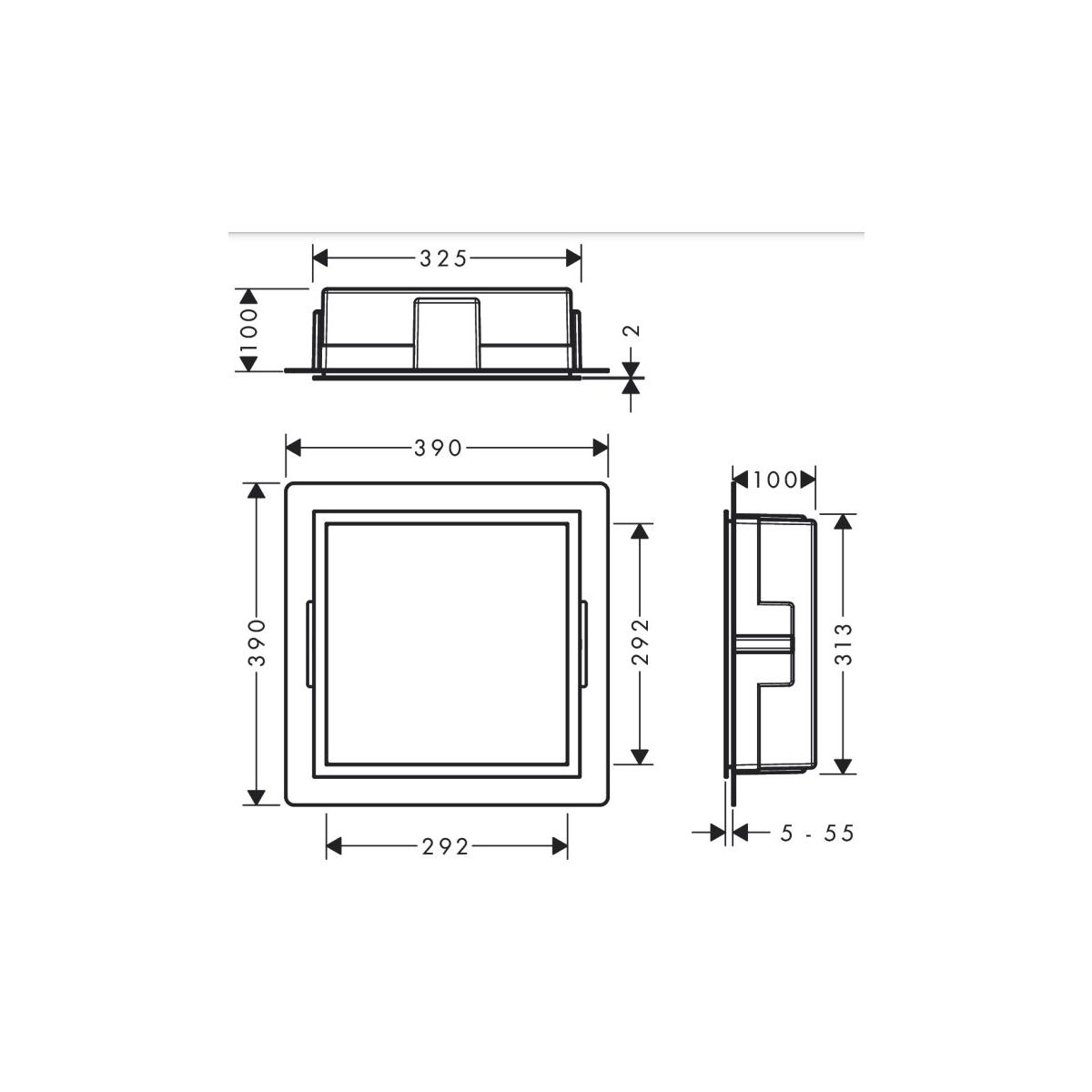 - rozměry stěnové dutiny: 300 x 300 x 100 mm