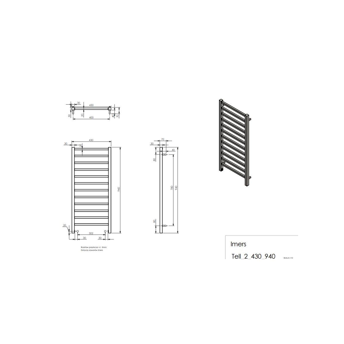 Imers Tell koupelnový radiátor žebříkový 94x43 cm černá G0174309405