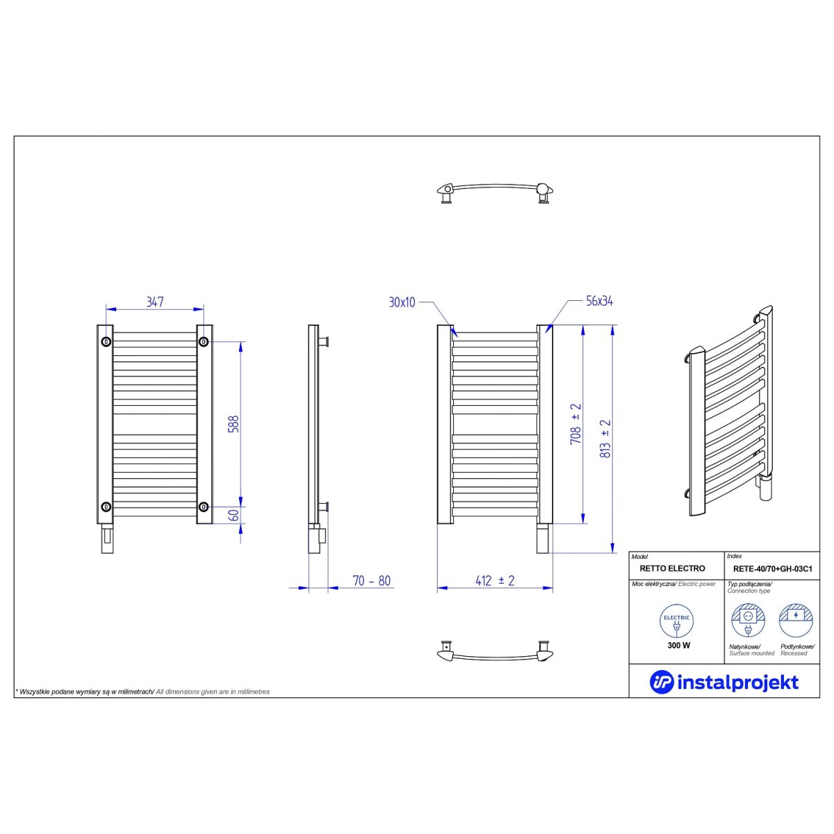 Instal Projekt Retto Electro elektrický radiátor 70.8x41.2 cm bílá RETE-40/70C75+GH-03C2