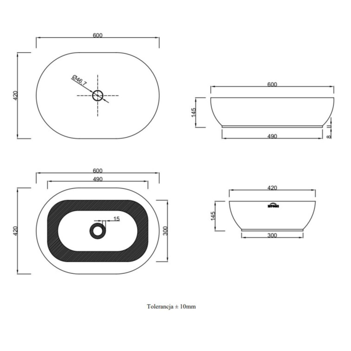 Invena Korfu umyvadlo 60x42 cm oválné na pult šedá/kámen CE-34-701