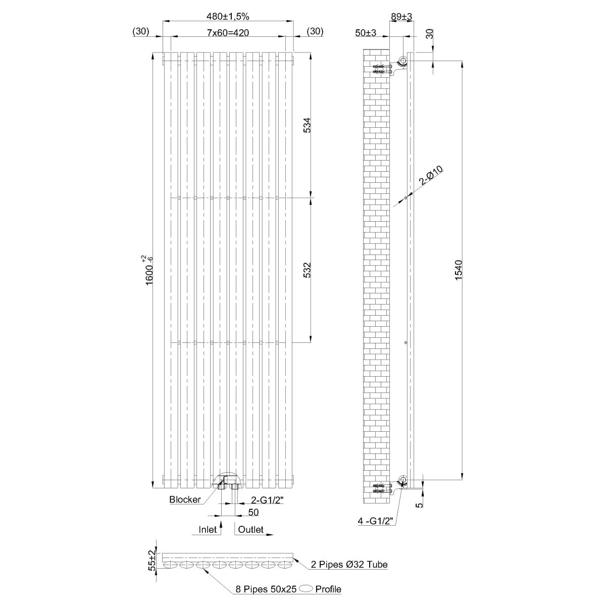 Invena koupelnový radiátor designově 160x48 cm bílá UG-10-B16
