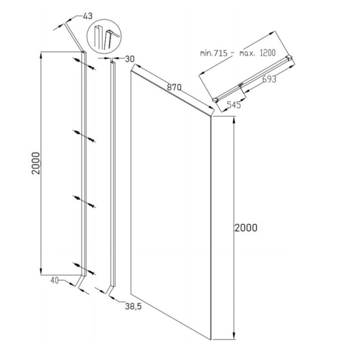 Sprchové kouty Walk-in mají módní minimalistický design. Lze je instalovat jako pravé nebo levé. Sprchový kout walk-in je vhodný prakticky do každé koupelny. Hodí se i do malých koupelen v paneláku, kterým dodá lehkost a opticky koupelnu zvětší. Kabina je vyrobena z průhledného skla o tloušťce 8 mm. Sklo bylo ošetřeno vrstvou lesklého skla, která zabraňuje usazování vodního kamene a vzniku skvrn, čímž si déle zachovává lesklý vzhled. Absence různých těžko přístupných rohů usnadňuje čištění. Černé prvky sprchového koutu dokonale kontrastují se sklem.