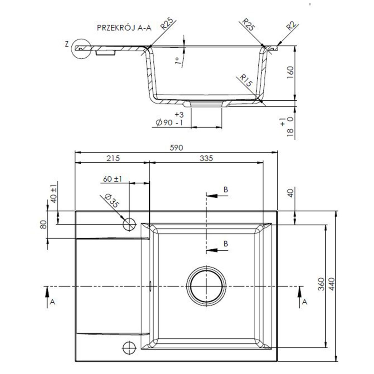 - dřez má připravený otvor pro baterii a vypouštěcí knoflík