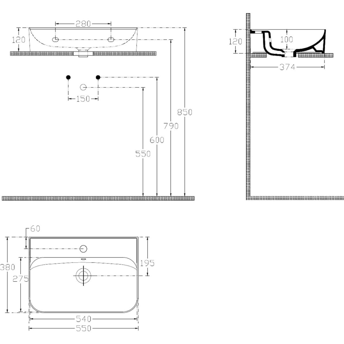 Isvea Sistema umyvadlo 55x38 cm obdélníkový klasický-na pult bílá 10PL53055