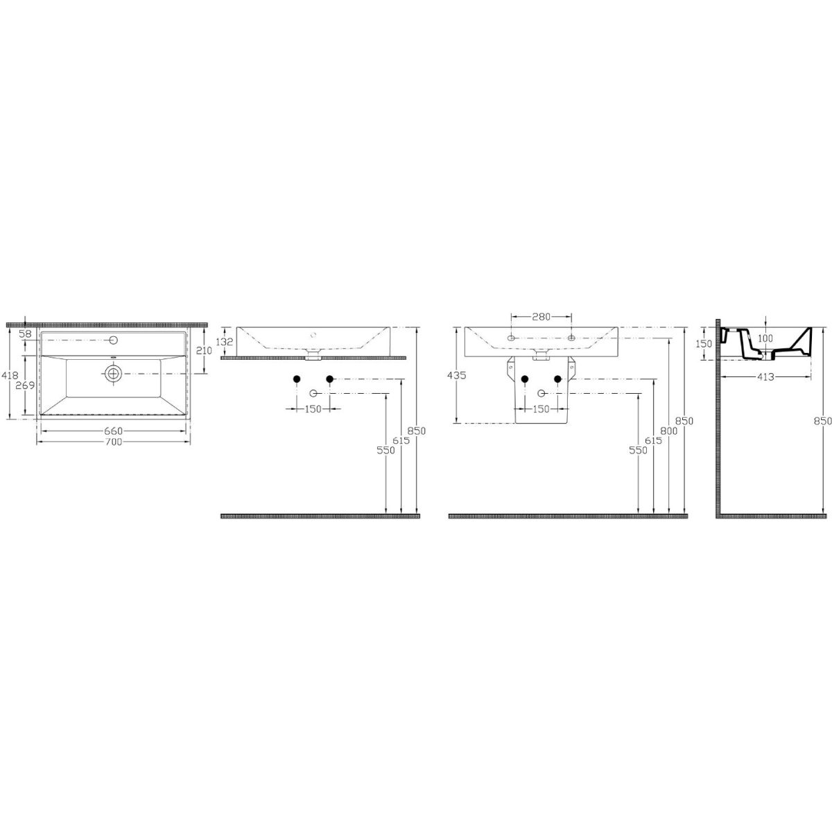 Isvea Sistema umyvadlo 70x42 cm obdélníkový klasický-na pult bílá 10SF50070