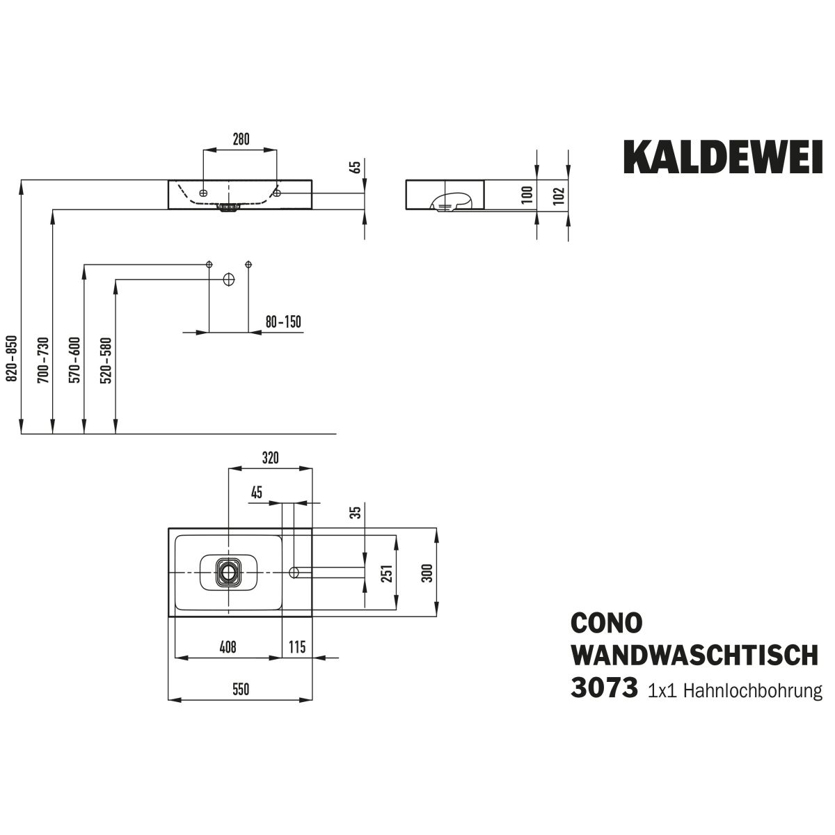 Kaldewei Cono umyvadlo 55x30 cm obdélníkový klasický bílá 908006393001