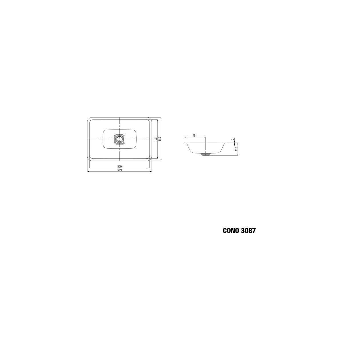 Kaldewei Cono umyvadlo 56.9x38.2 cm obdélníkový pod pult bílá 902306003001