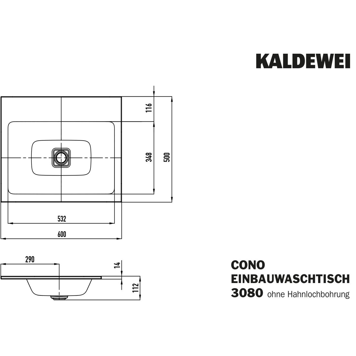 Kaldewei Cono umyvadlo 60x50 cm obdélníkový zápustný bílá 901606003001