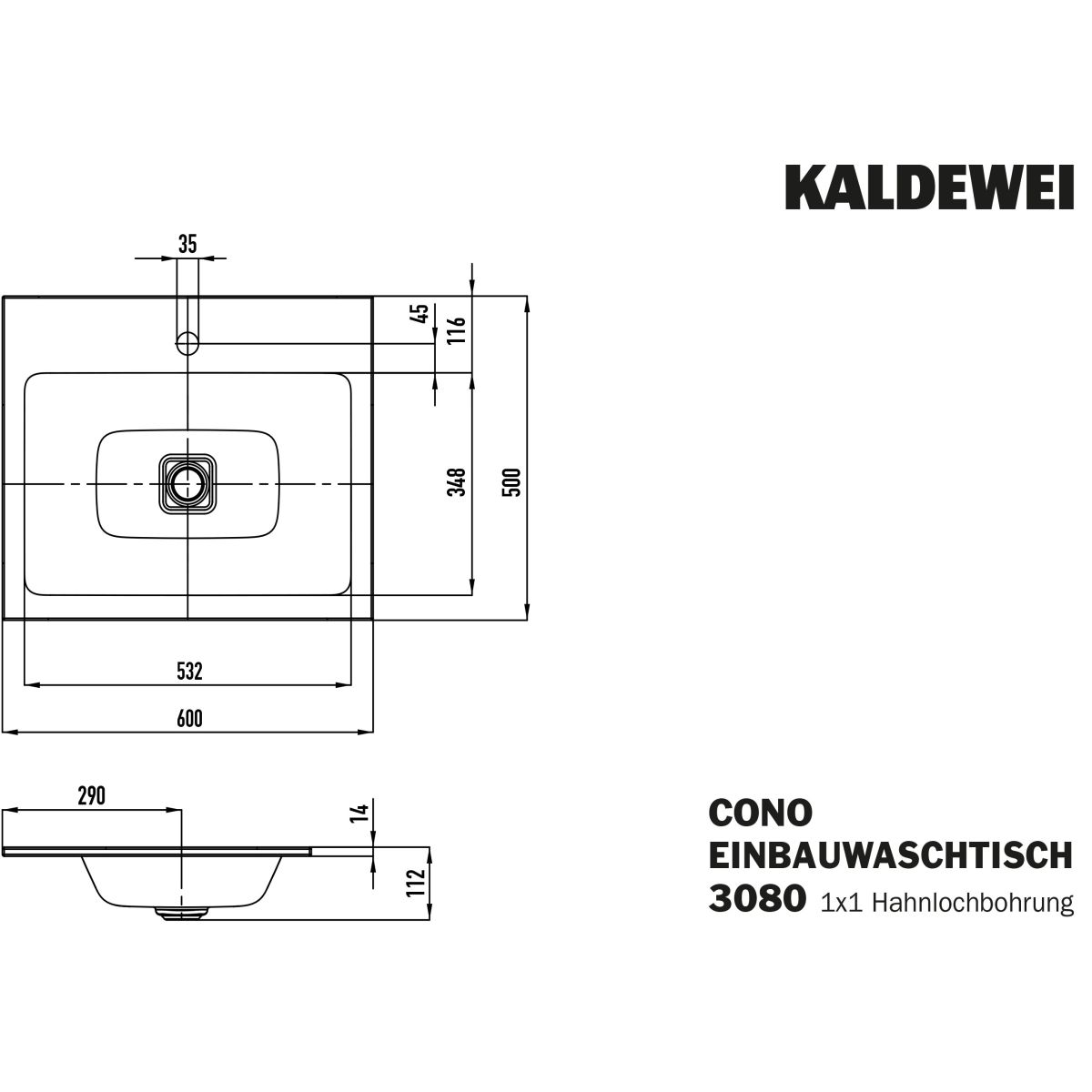 Kaldewei Cono umyvadlo 60x50 cm obdélníkový zápustný bílá 901606013001