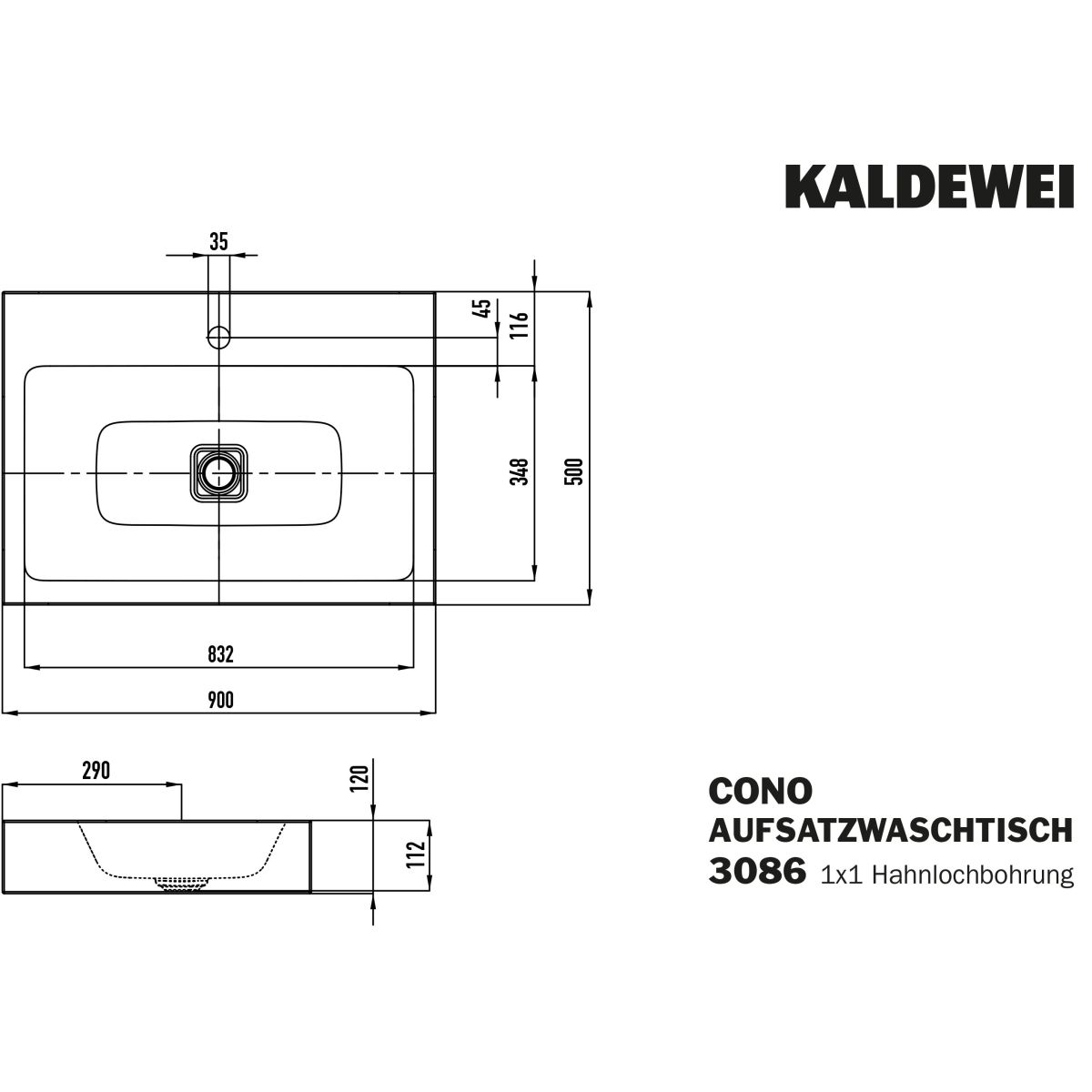 Kaldewei Cono umyvadlo 90x50 cm obdélníkový na pult bílá 902206013001