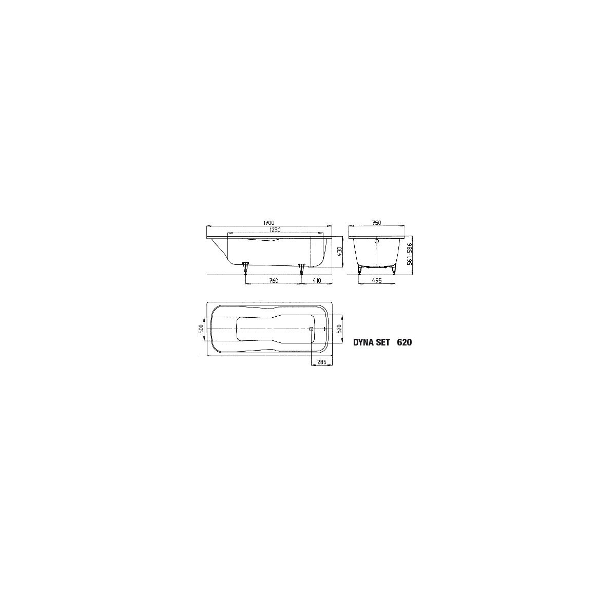 Kaldewei Dyna Set obdélníková vana 170x75 cm bílá 226100013001