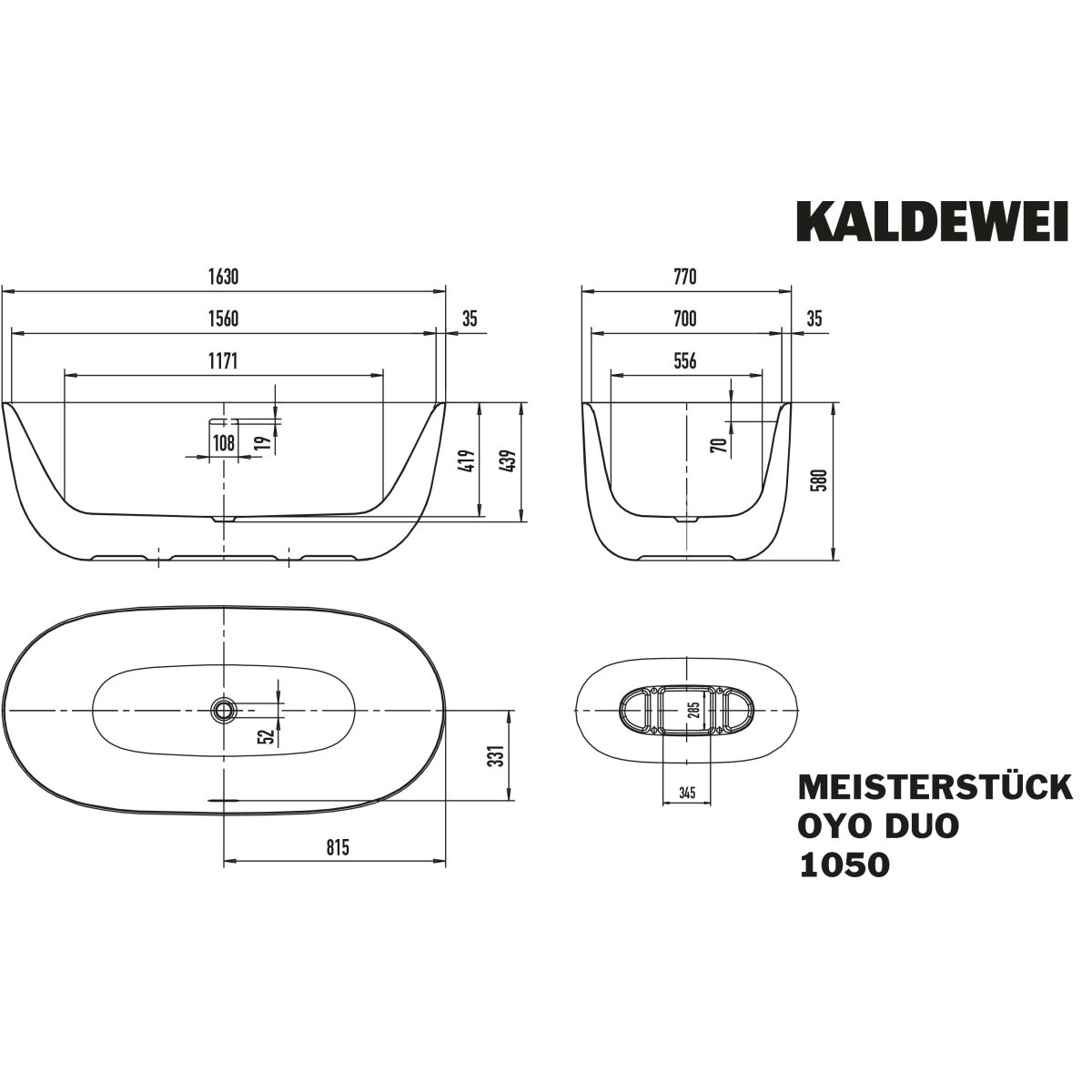 Kaldewei Meisterstück Oyo Duo volně stojící vana 163x77 cm oválná 205043530668