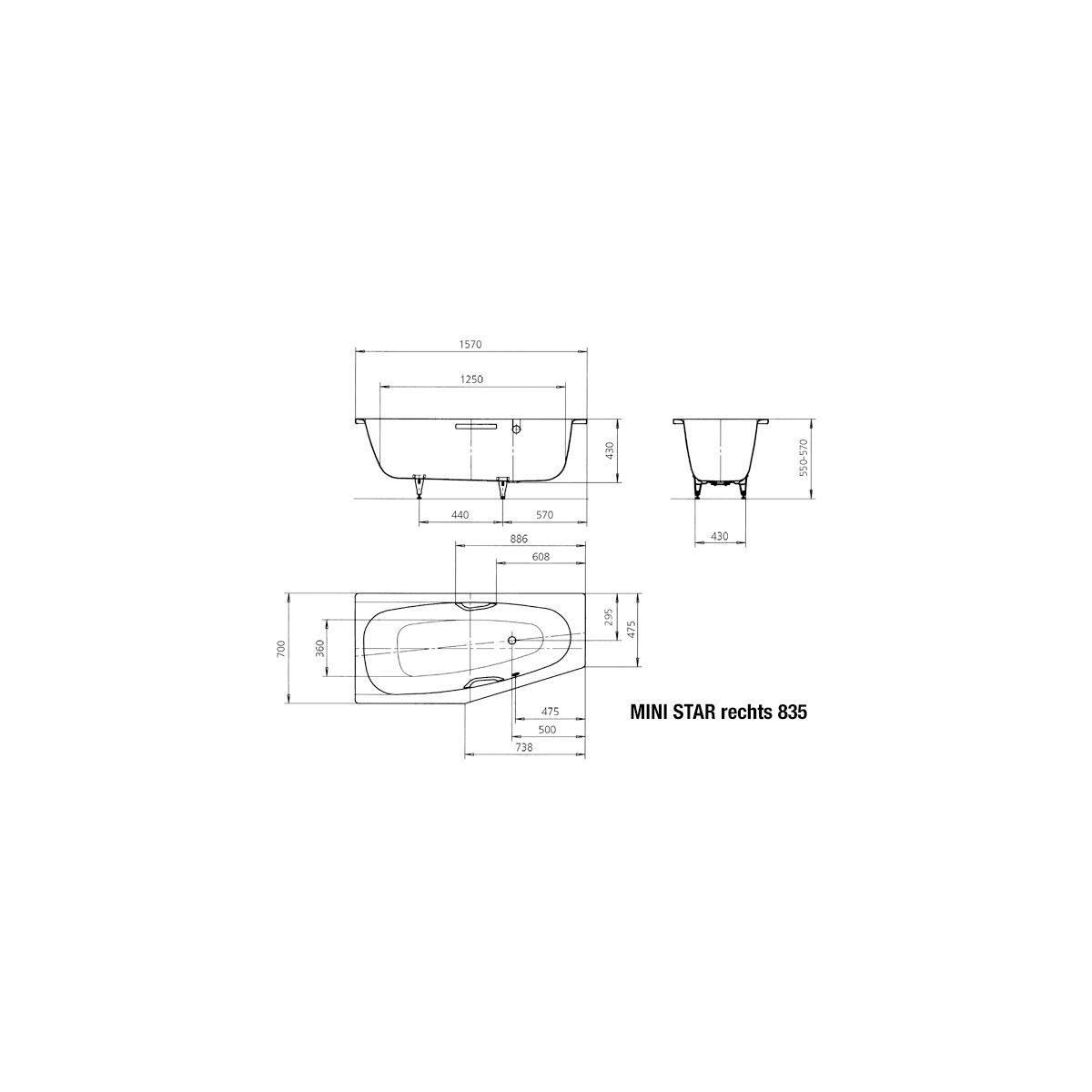 Kaldewei Mini Star rohová vana 157x70 cm Pravostranná bílá 224500013001