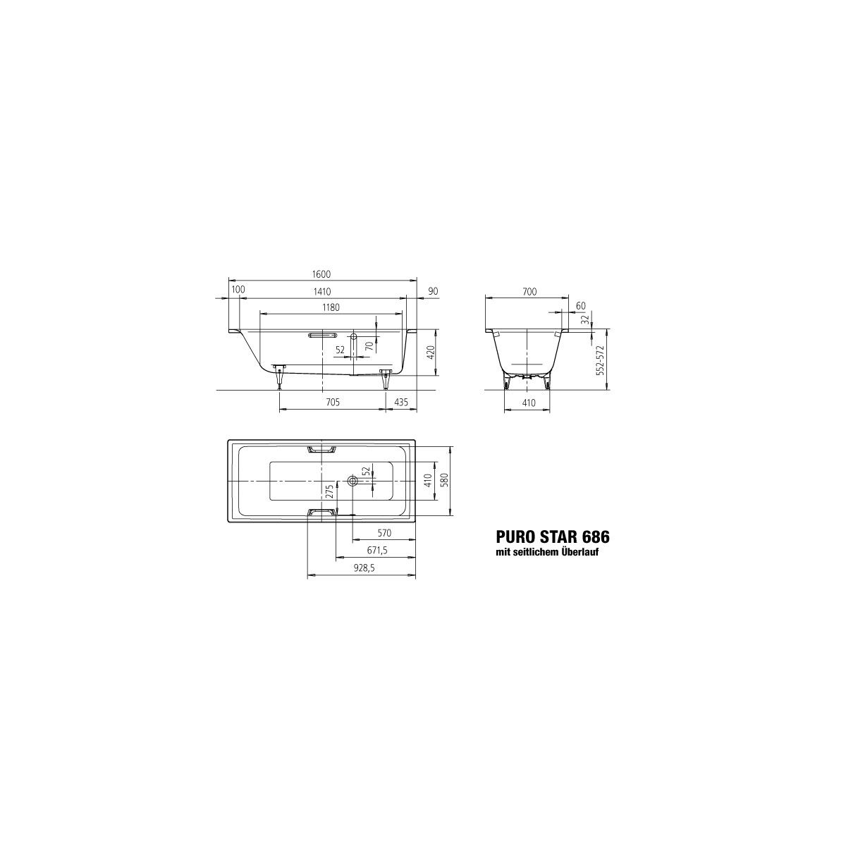 Kaldewei Puro obdélníková vana 160x70 cm bílá 258600010001