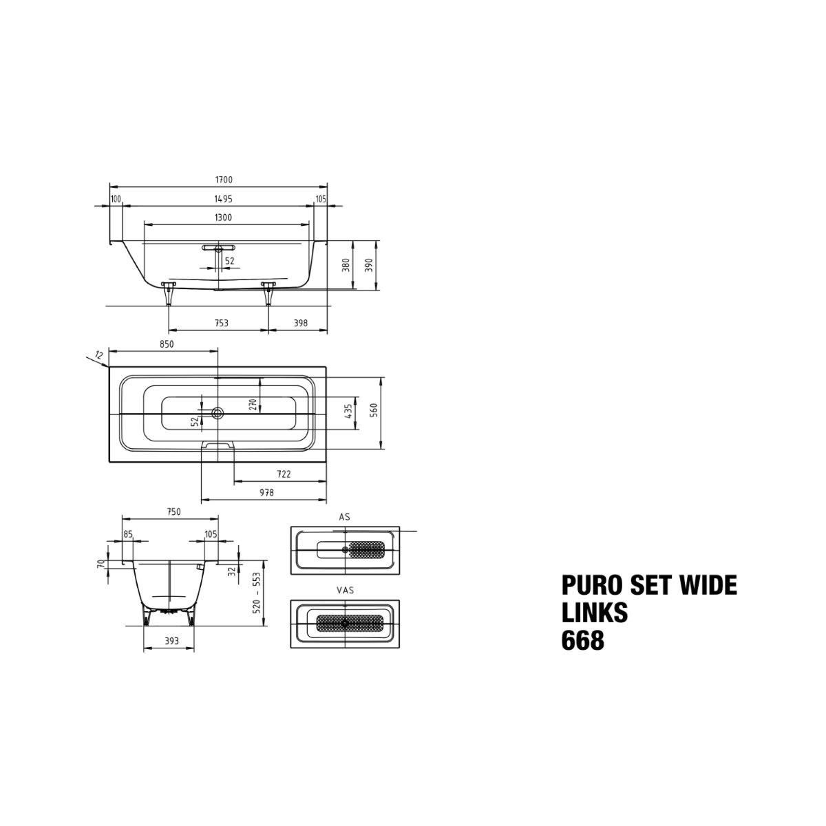 Kaldewei Puro obdélníková vana 170x75 cm bílá 261100010001