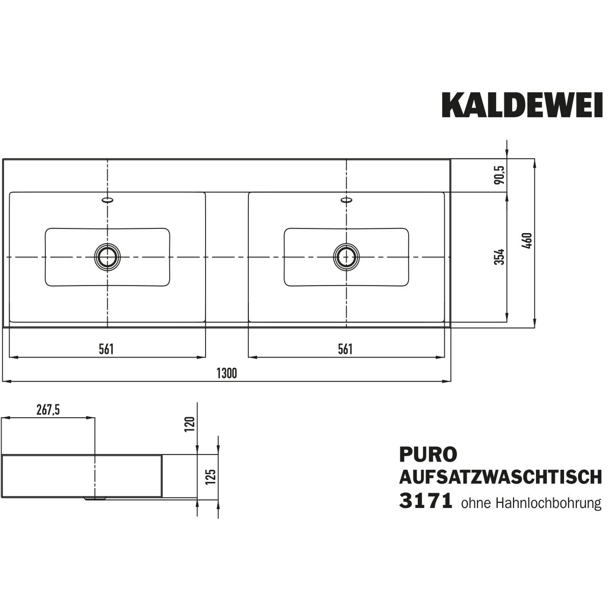 Kaldewei Puro umyvadlo 130x46 cm obdélníkový na pult bílá 907206003001
