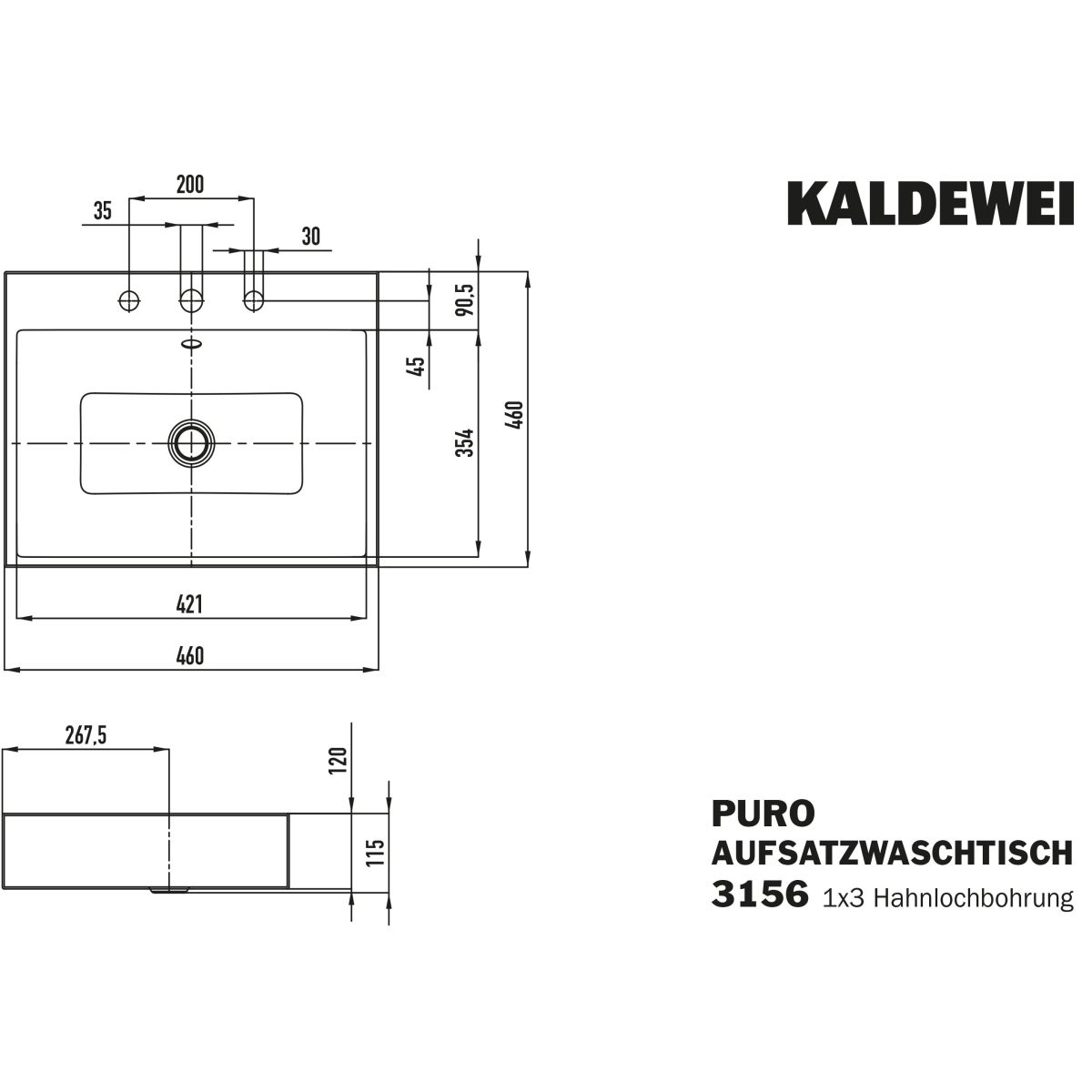 Kaldewei Puro umyvadlo 46x46 cm čtvercový na pult bílá 900606033001