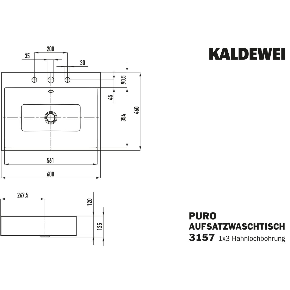 Kaldewei Puro umyvadlo 60x46 cm obdélníkový na pult bílá 900706033001