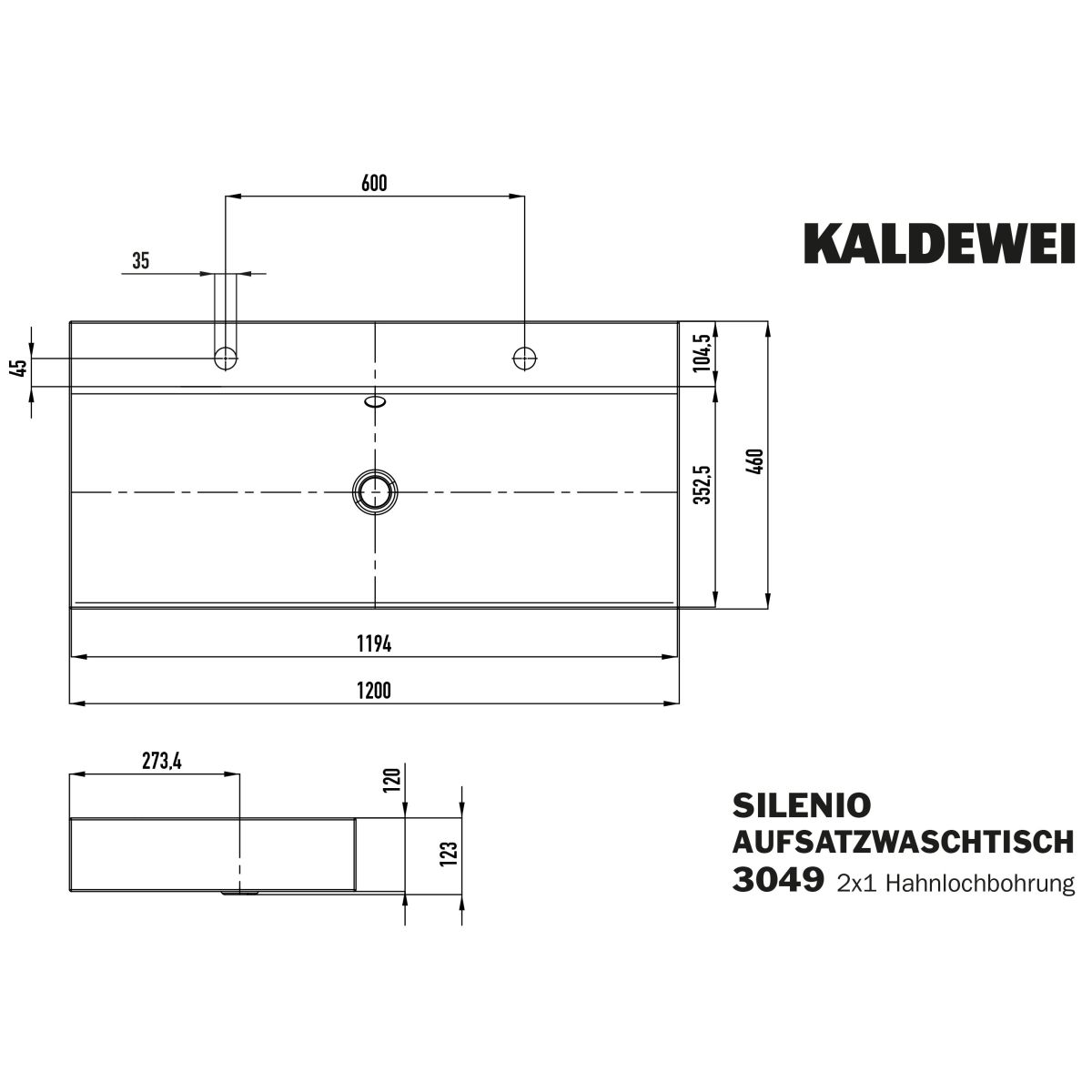 Kaldewei Silenio umyvadlo 120x46 cm obdélníkový na pult bílá 906406043001