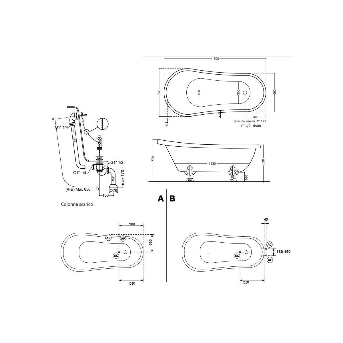 Kerasan Retro volně stojící vana 170x77 cm oválná bílá 105501