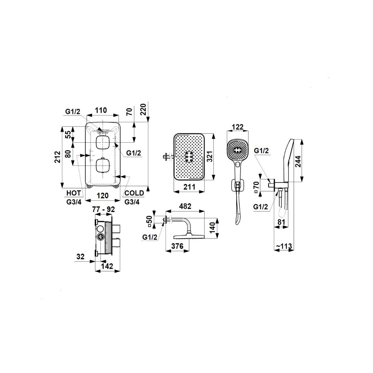 - obsah balení: skrytá skříňka, kompletní baterie, armatura, talířová sprcha s hadicí, skrytá posuvná sprcha, návod k instalaci a obsluze se zárukou