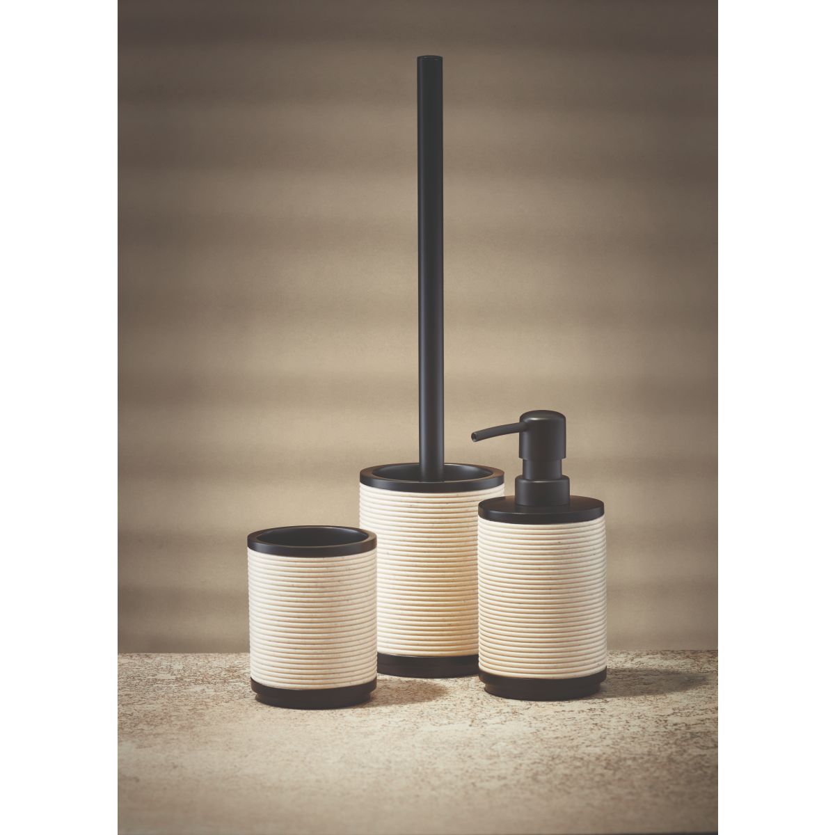 Pomocí doplňků Runa od společnosti Kleine Wolke si můžete v koupelně snadno nastavit osobní akcenty a vytvořit si individuální prostor pro pohodu. Moderní design "Runa" je nadčasový a na první pohled vytváří harmonický celkový dojem. Přírodní barvy ve dvoubarevné kombinaci účinně rámují nekomplikovanou rýhovanou strukturu. Díky kvalitnímu zpracování série doplňků vydrží elegantní vzhled dlouho i při častém používání. Neporézní vnitřní povrch je obzvláště hygienický na čištění. Tyto koupelnové doplňky vám budou dlouho dělat radost. Odpovídá sérii koberečků Travis.