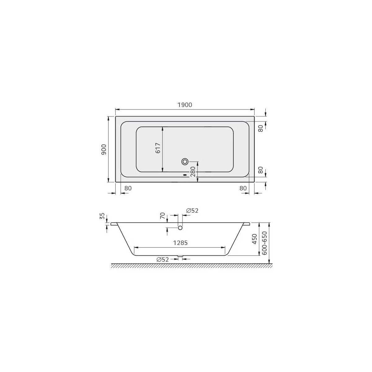 - Provedení: Přepadový a odtokový otvor uprostřed delší strany