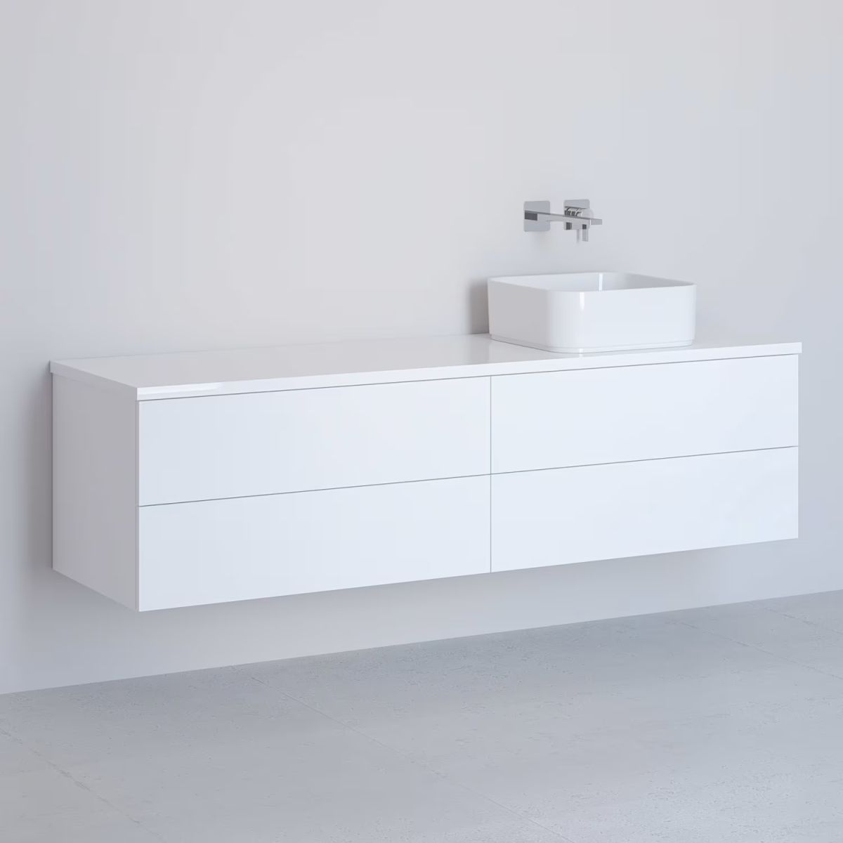 Umyvadlová konzola Kronenbach Cube 161 cm se 4 zásuvkami a bílou lesklou deskou
