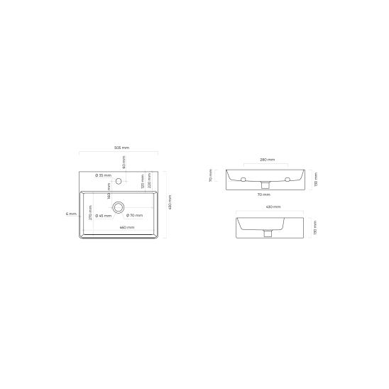 Ksuro 100 umyvadlo 50.5x43 cm obdélníkový na pult bílá 21801000