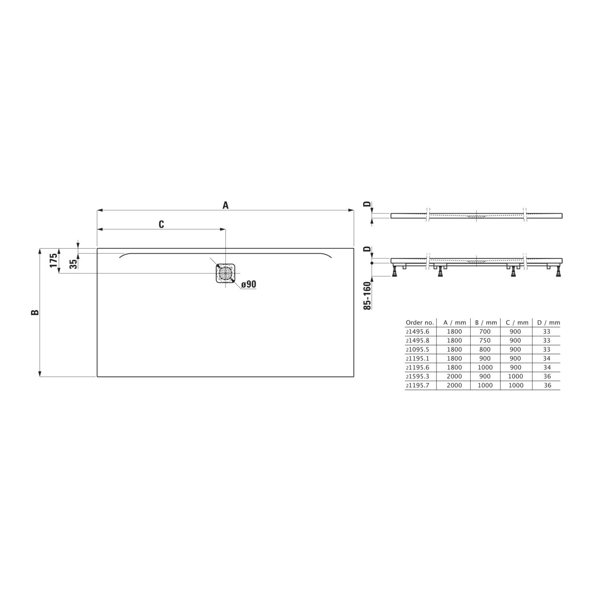 Laufen Pro obdélníková sprchová vanička 180x100 cm betonová H2119560790001