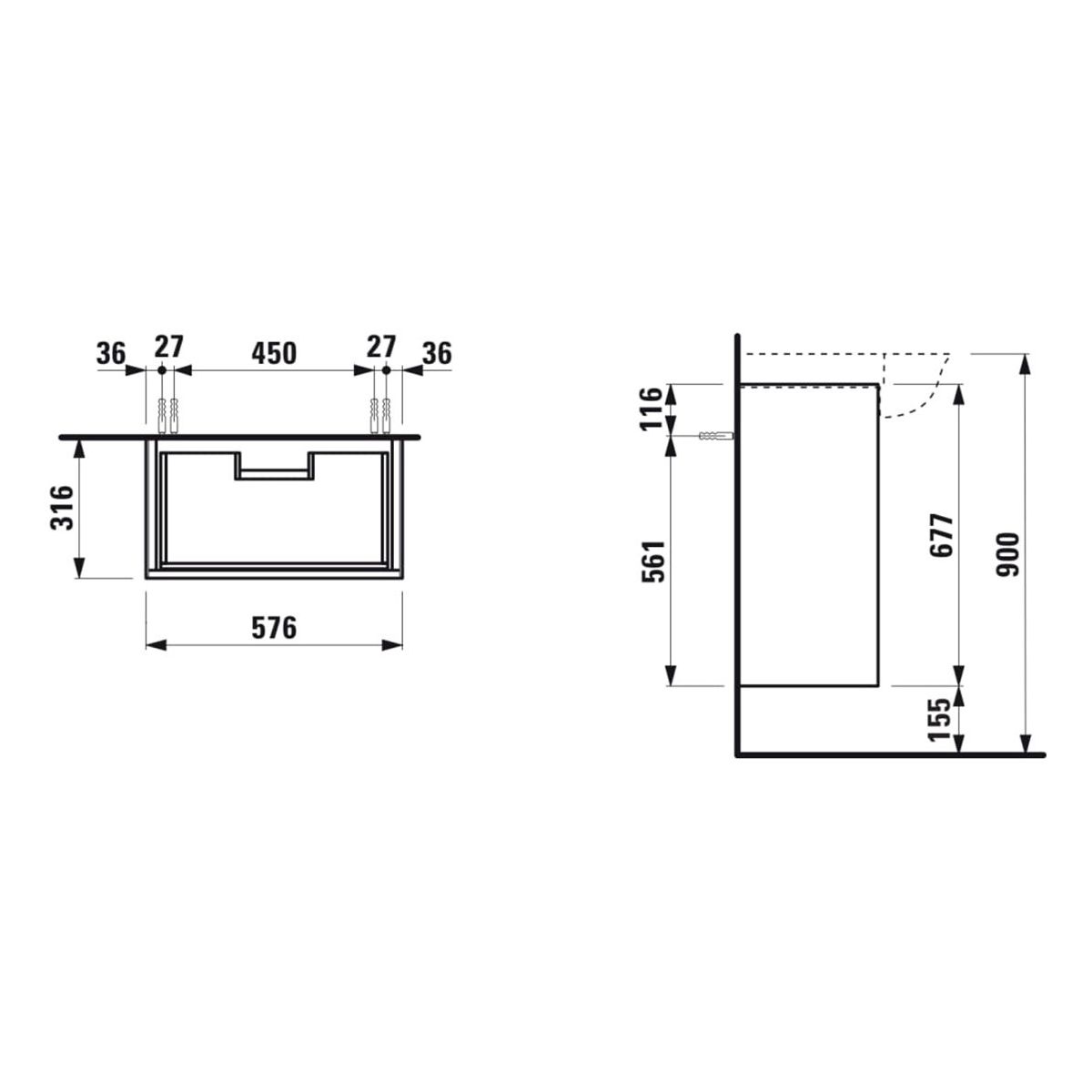 Laufen The New Classic skříňka 57.6x31.6x67.7 cm závěsná pod umyvadlo šedá H4060320856271