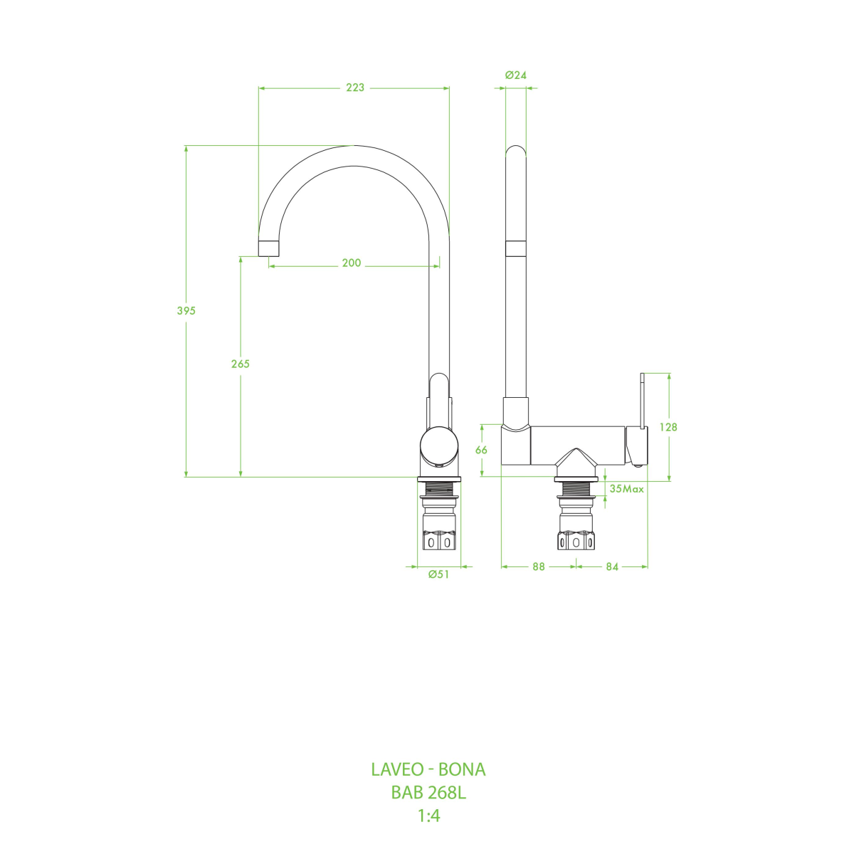 Laveo Bona kuchyňská baterie stojící ušlechtilá ocel BAB268L