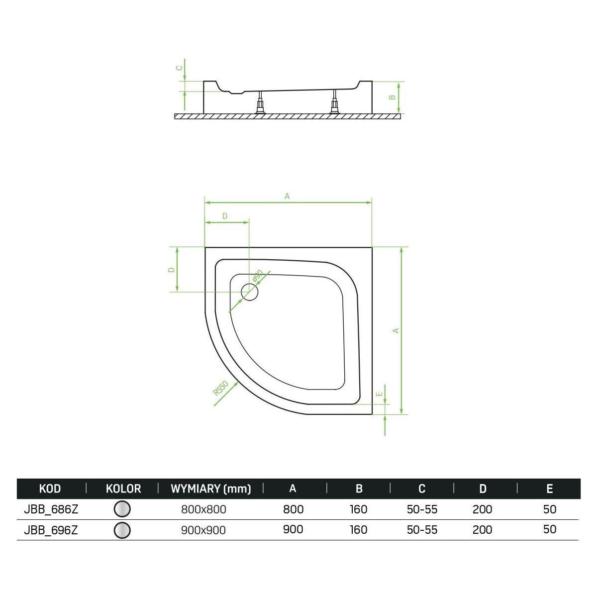 Laveo Bresso sprchový kout s vaničkou 90x90 cm půlkulatá chrom lesk/průhledné sklo JKDD096Z