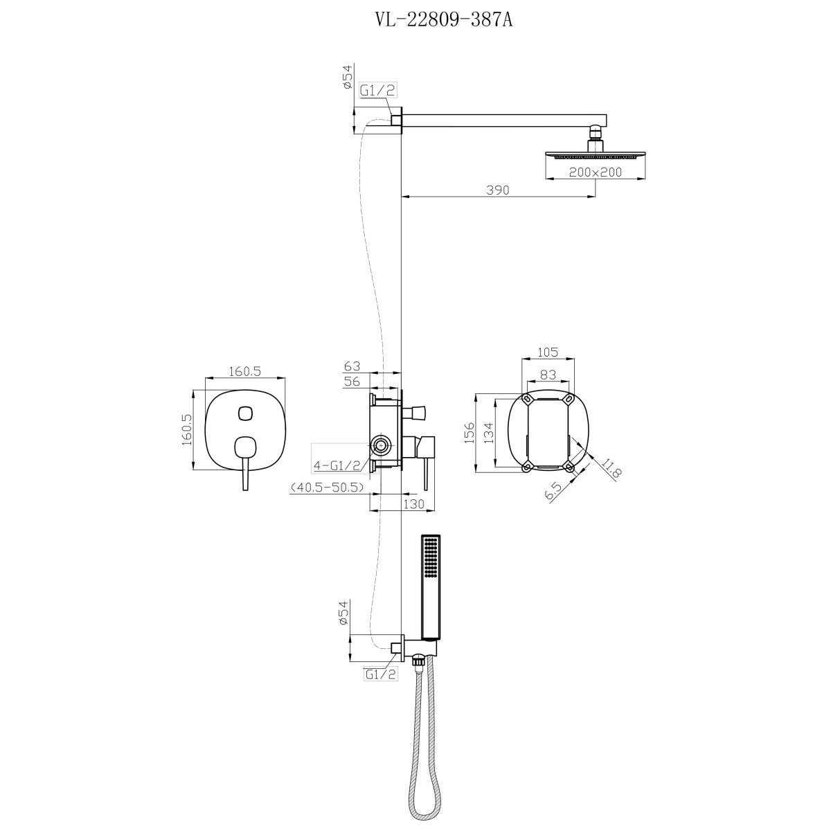 - sada obsahuje: skrytý box, rukojeť, sprchovou hadici, dešťovou sprchu, držák rukojeti