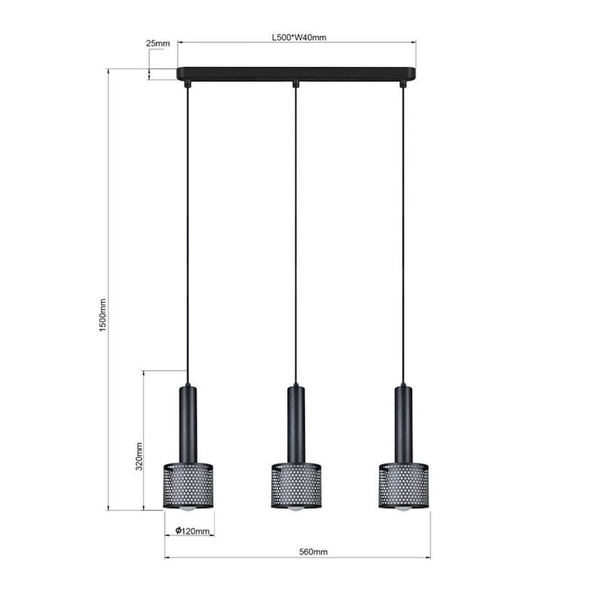 Light Prestige Amo závěsné svítidlo 3x15 W černá LP-0702/3L BK