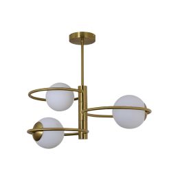 - Barva: Zlatý rám v kombinaci s mléčnými kulovitými stínidly dodává lampě elegantní a nadčasový dojem.