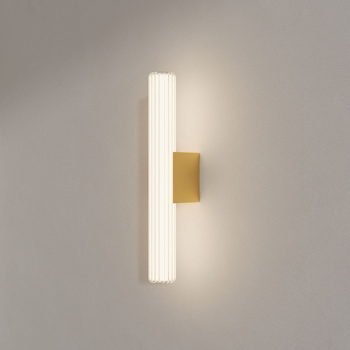 Nástěnné svítidlo z kolekce Linea je harmonickou kombinací moderního designu a funkčnosti. Jedinečné stínidlo ve tvaru trubice, vyrobené z průhledného skla, je zdobeno jemným vzorem svislých čar. Inovativní design obsahuje integrované osvětlení LED CCT, které umožňuje zvolit si preferovanou barvu světla - od teplé přes neutrální až po studenou. Nástěnné svítidlo je namontováno na kovovém podhledu. Díky svému jednoduchému, ale stylovému designu se nástěnné svítidlo Linea skvěle hodí do moderních interiérů, bytových i komerčních, kterým dodá eleganci a jemnou záři.