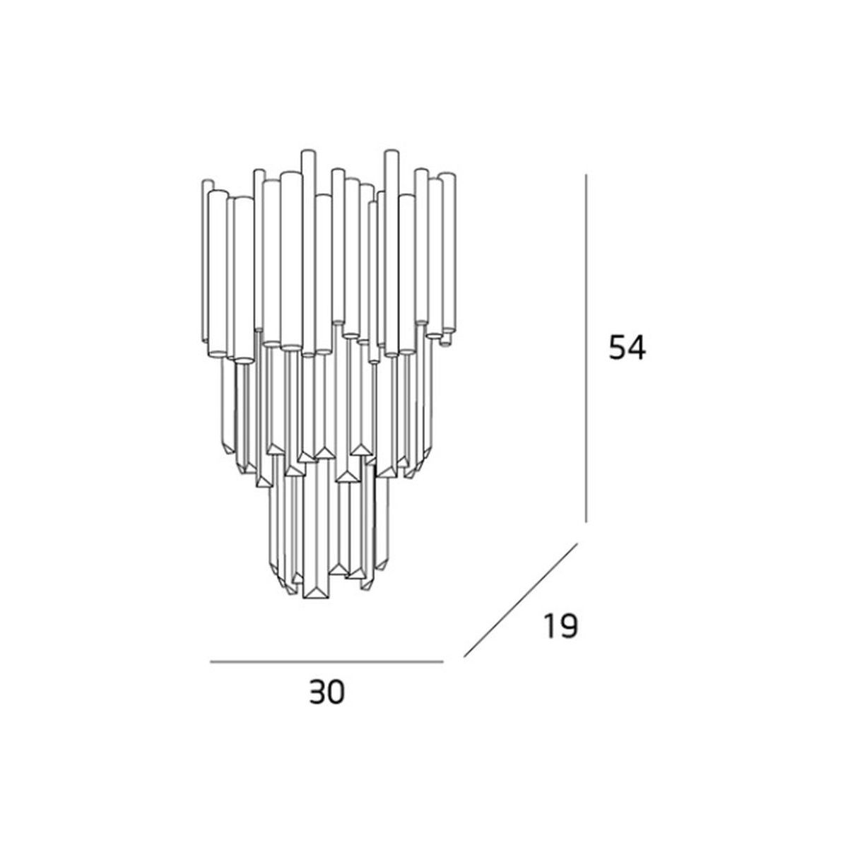 Krystaly jsou vyrobeny ze skla. Lampa je v lesklém žlutém zlatě.