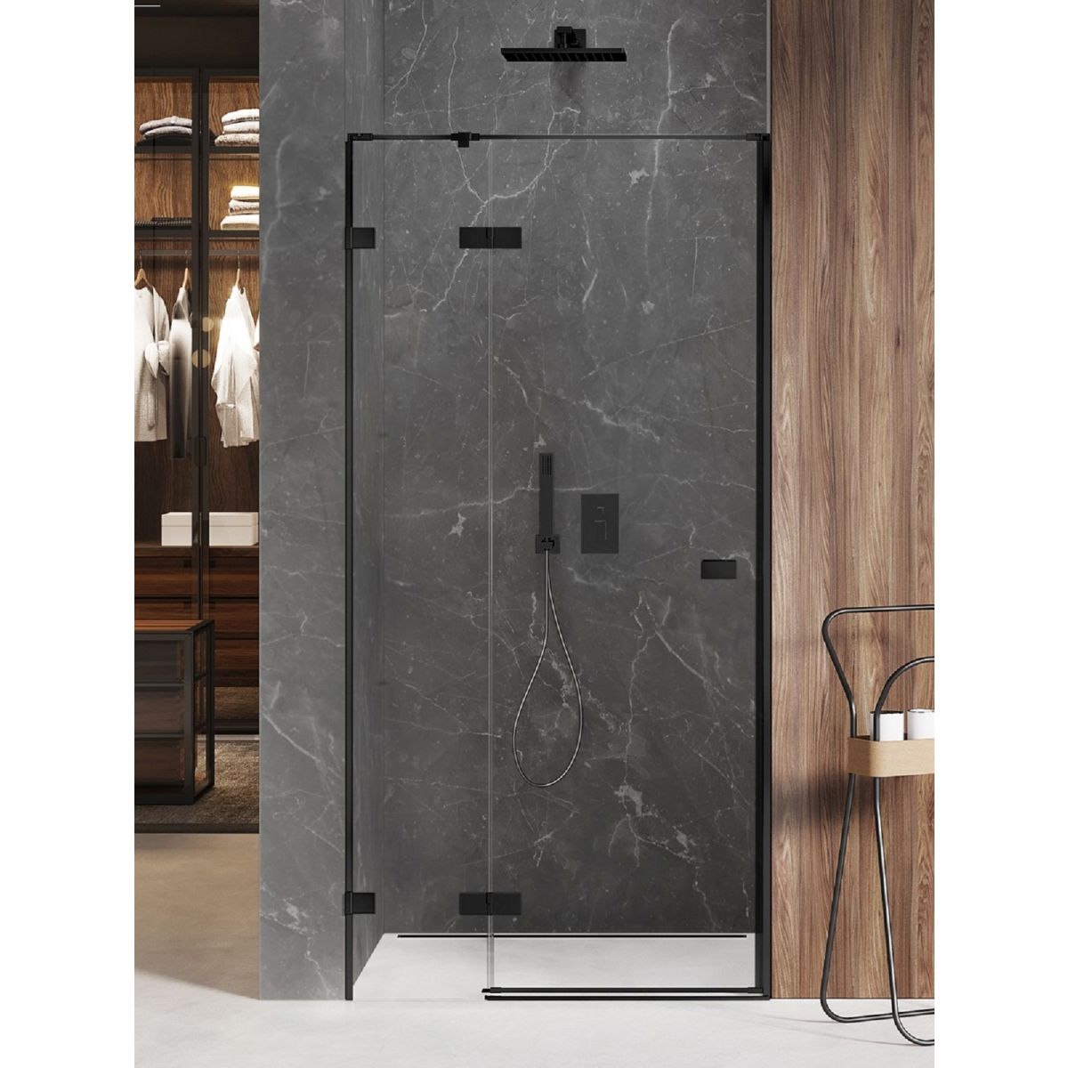 New Trendy Avexa Black sprchové dveře 100 cm sklopné černá matný/průhledné sklo EXK-1550