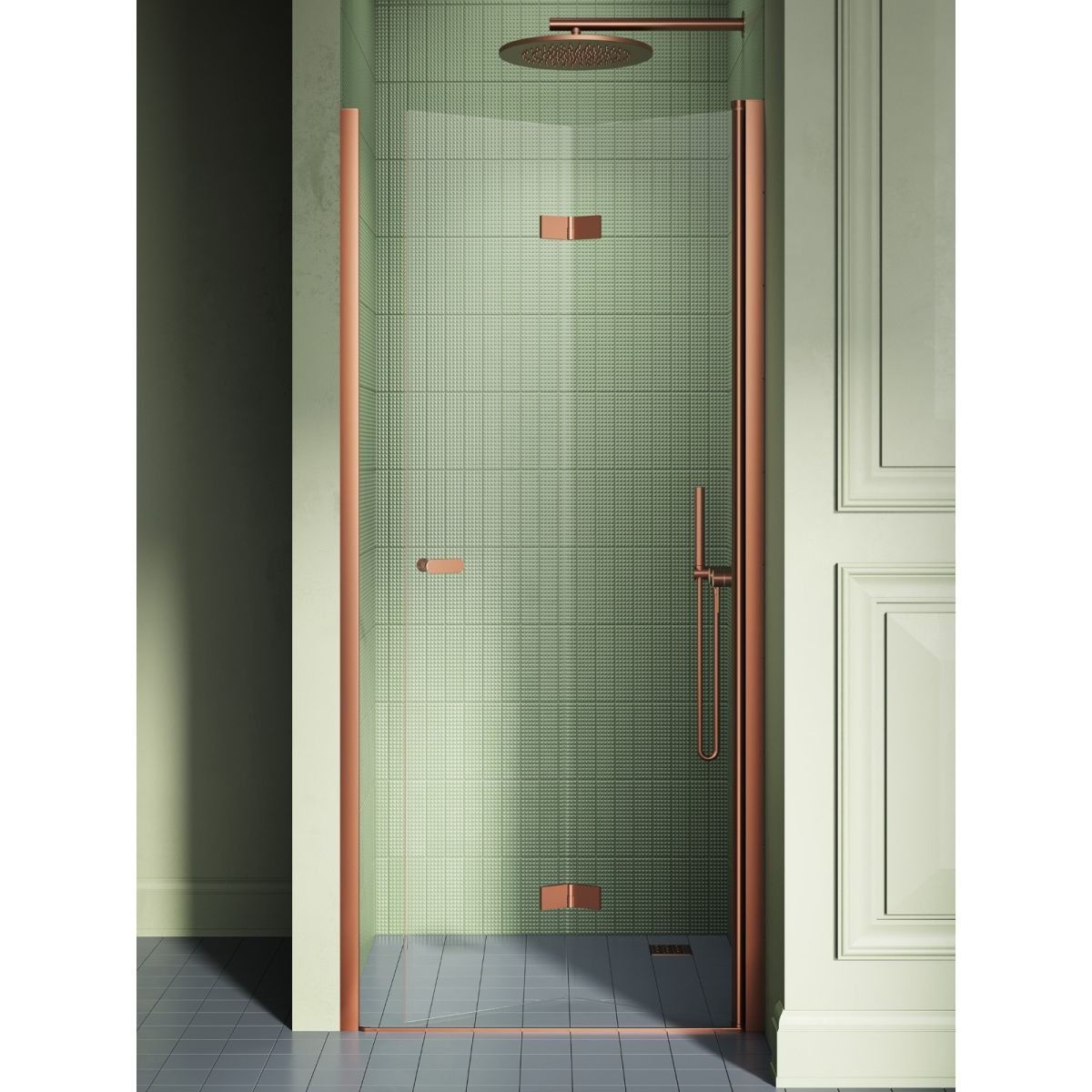 New Trendy New Soleo Copper Brushed sprchové dveře 90 cm skládací měděná kartáčovaný/průhledné sklo D-0504A
