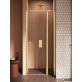 New Trendy New Soleo sprchové dveře 90 cm sklopné zlatá kartáčovaný/průhledné sklo D-0771A-WK