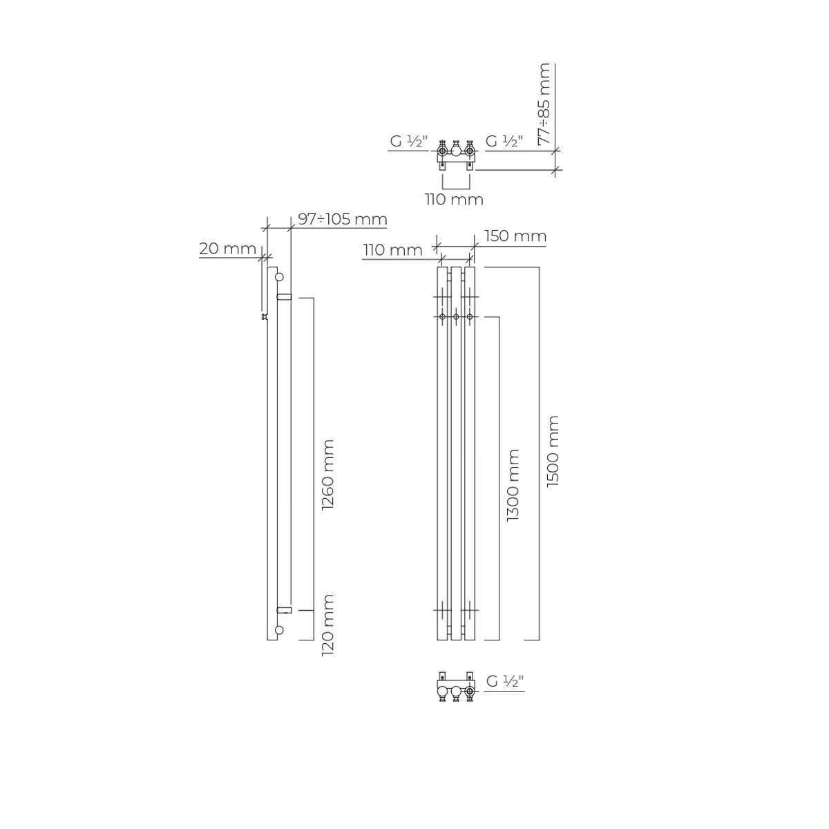 Oltens Stang koupelnový radiátor designově 150x15 cm 55019610
