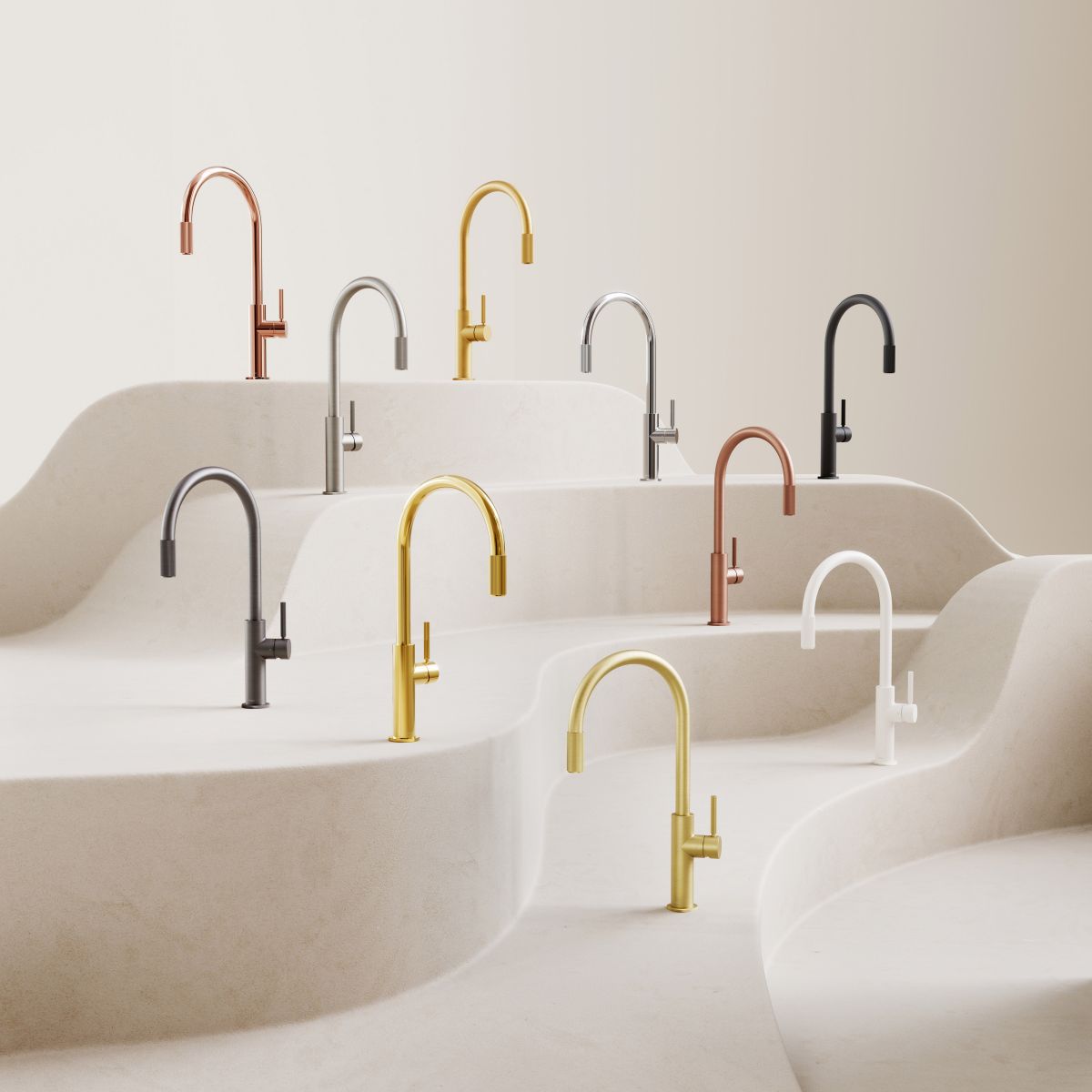 Kuchyňská baterie Omnires Switch kombinuje minimalistický design založený na vyvážených proporcích s praktickou funkčností a dodává jak čistou, tak filtrovanou vodu. Výrazné, jemně rýhované detaily umožňují intuitivní používání díky indikaci dvou nezávislých míst pro otevření vody: obyčejné vody na baterii a filtrované vody na konci výtoku - stačí otočit kroužkem umístěným na výtoku a naplnit sklenici rychlým proudem pitné vody té nejvyšší chuti. Baterie je k dispozici se sadou univerzálních přípojek pro připojení jakékoli filtrační soupravy namontované ve standardní dřezové skříňce.
