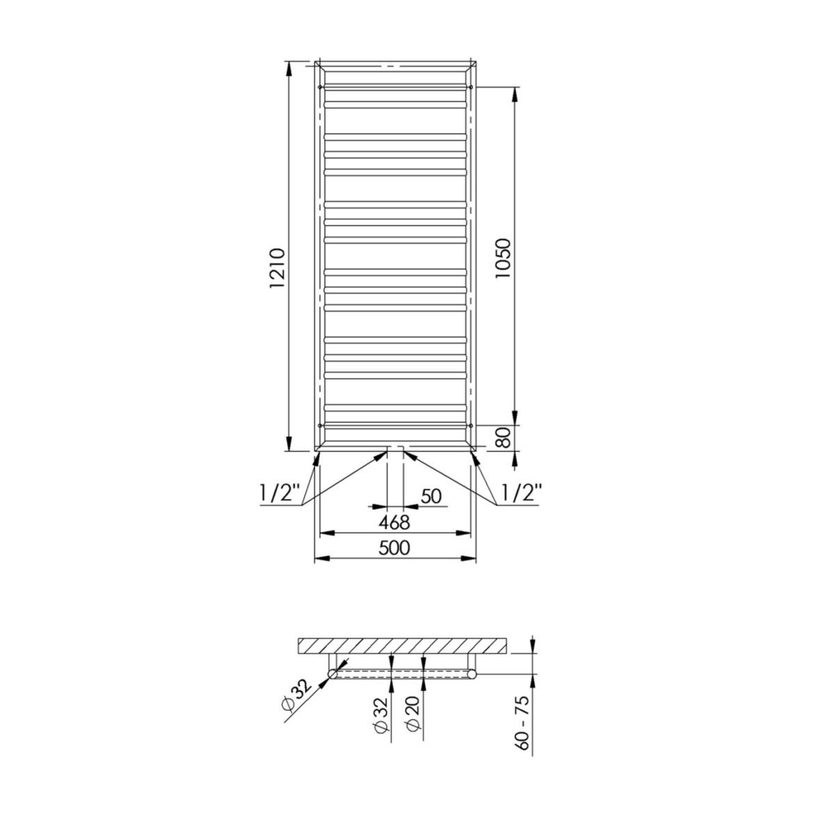 P.M.H. Sorano Frame koupelnový radiátor žebříkový 121x50 cm | SNF3MS