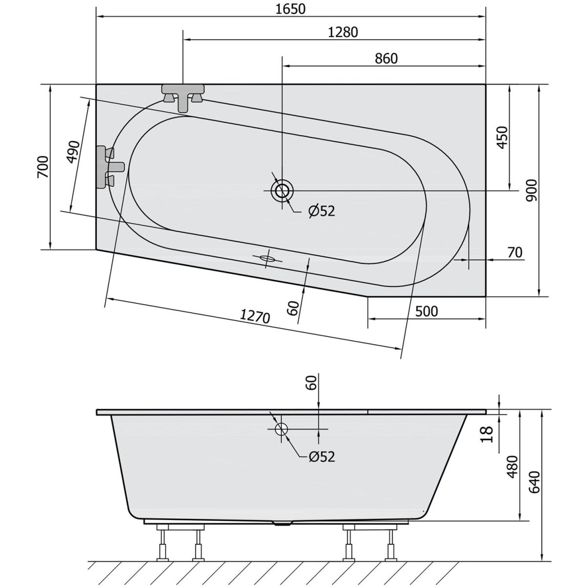 Polysan Astra rohová vana slim 165x90 cm Pravostranná bílá 31611S