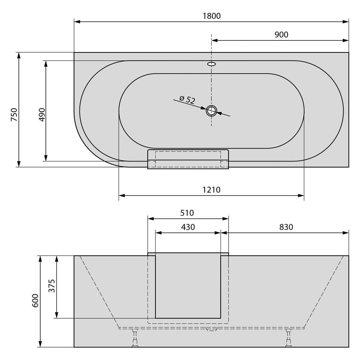 - průměr odtoku: 52 mm