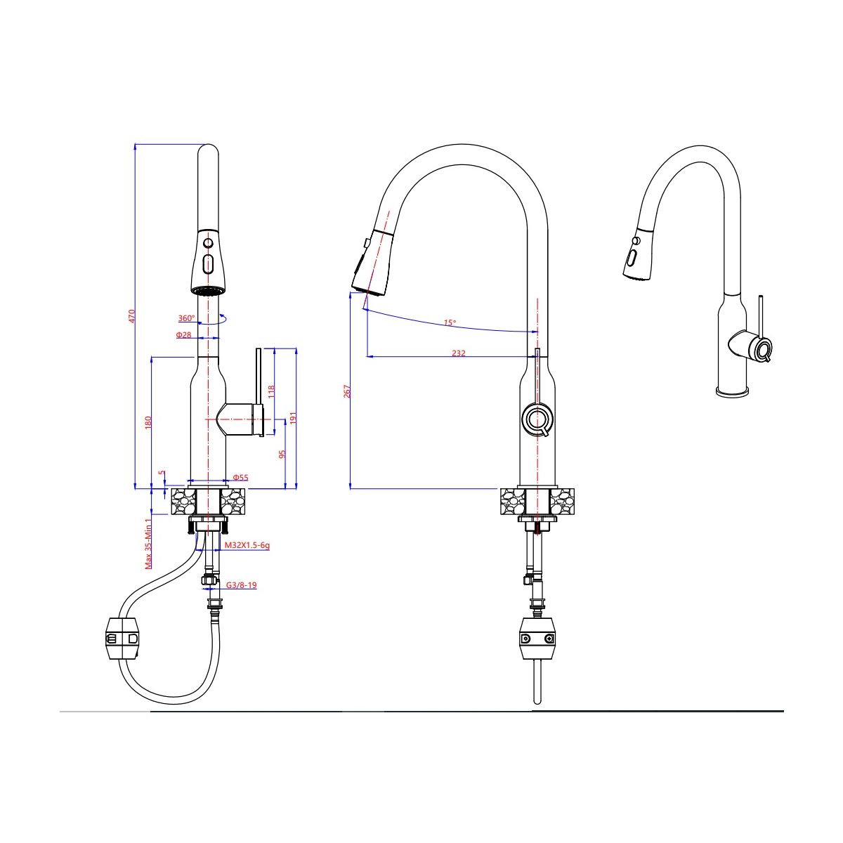 - 2 připojovací hadice G3/8 palce dlouhé 40 cm
